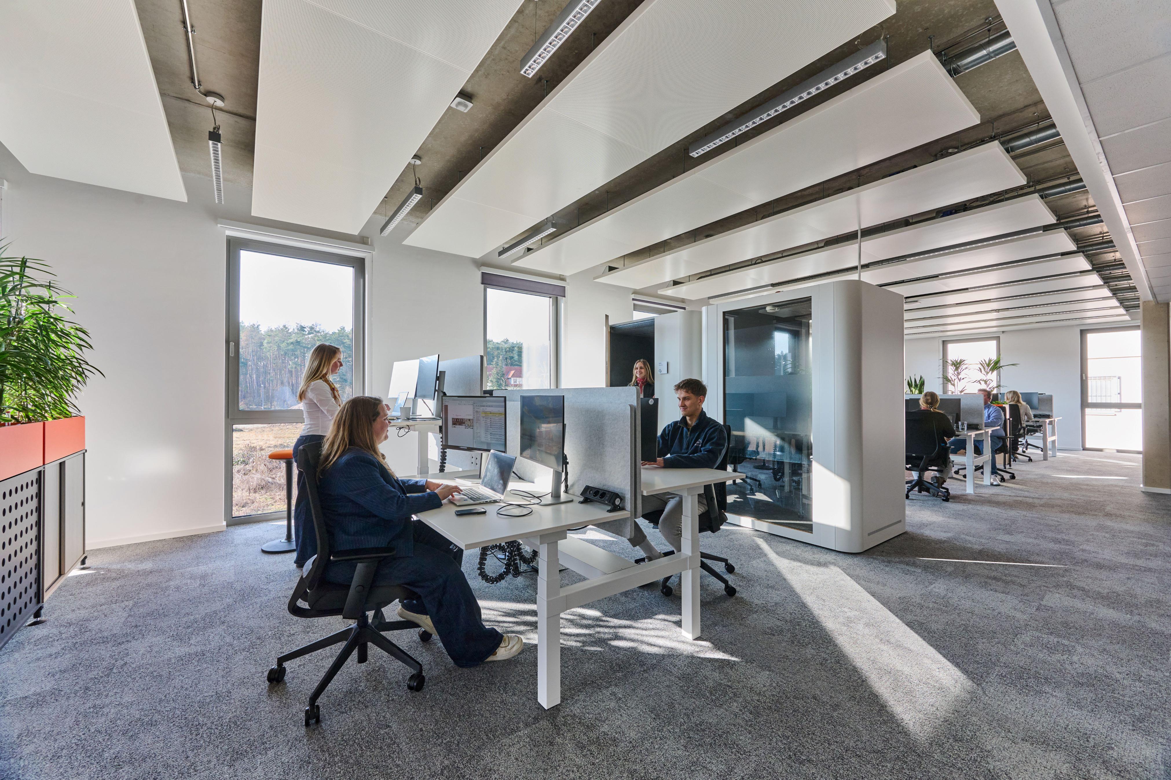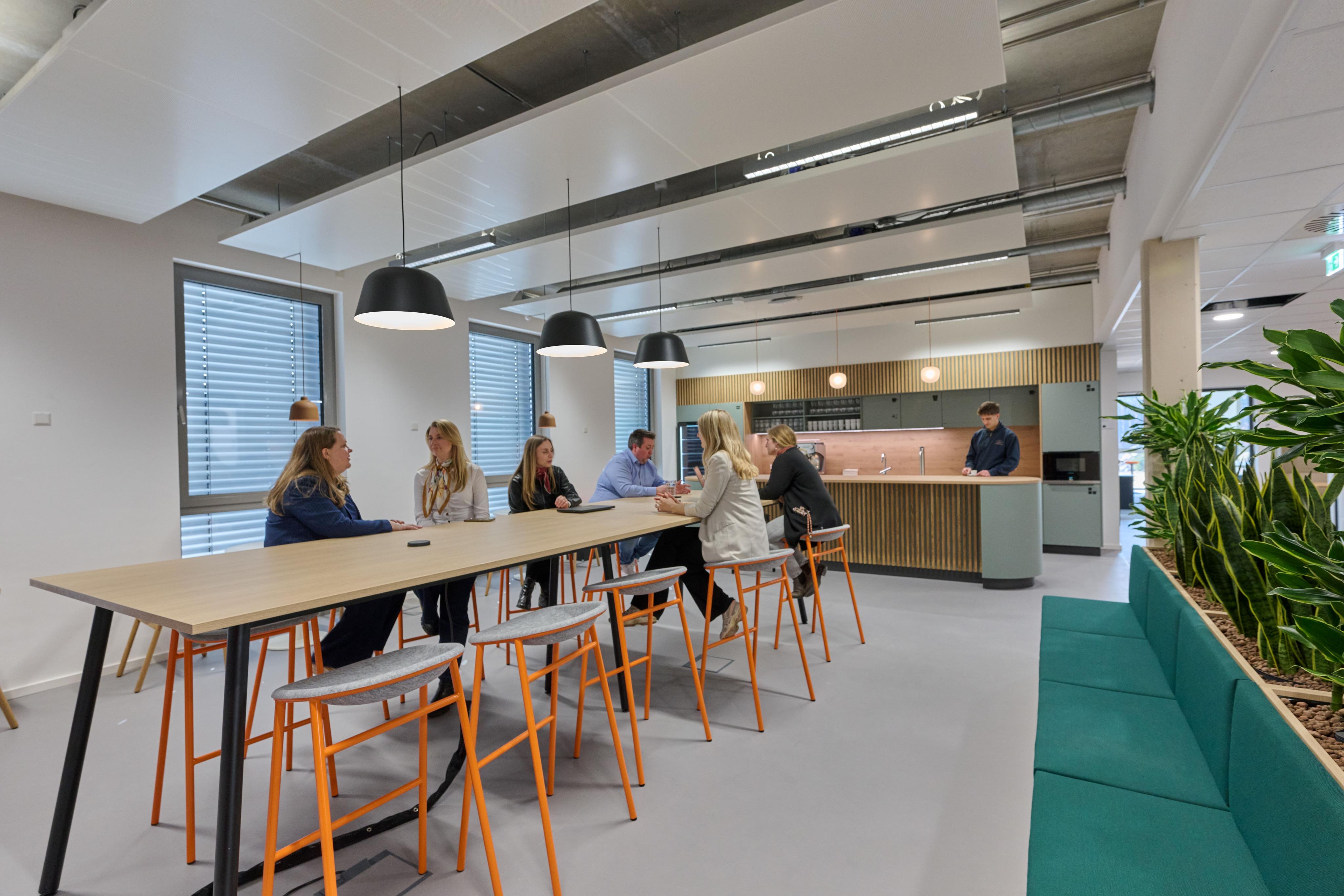 Nachhaltigkeitsaspekte spielten beim Bau eine wichtige Rolle. Für einen CO2-neutralen Betrieb des Gebäudes sorgen Heiz- und Kühlanlagen, die mit Grünstrom versorgt werden und komplett ohne fossile Brennstoffe auskommen. Bei der offen gestalteten Innenarchitektur wurde darauf geachtet, dass langfristig eine Vielzahl von Arbeitsformen vor Ort, hybrid und remote unterstützt werden. Räume, wie der sogenannte Flex Space, können von den Mitarbeitenden und Gäste universell genutzt werden.